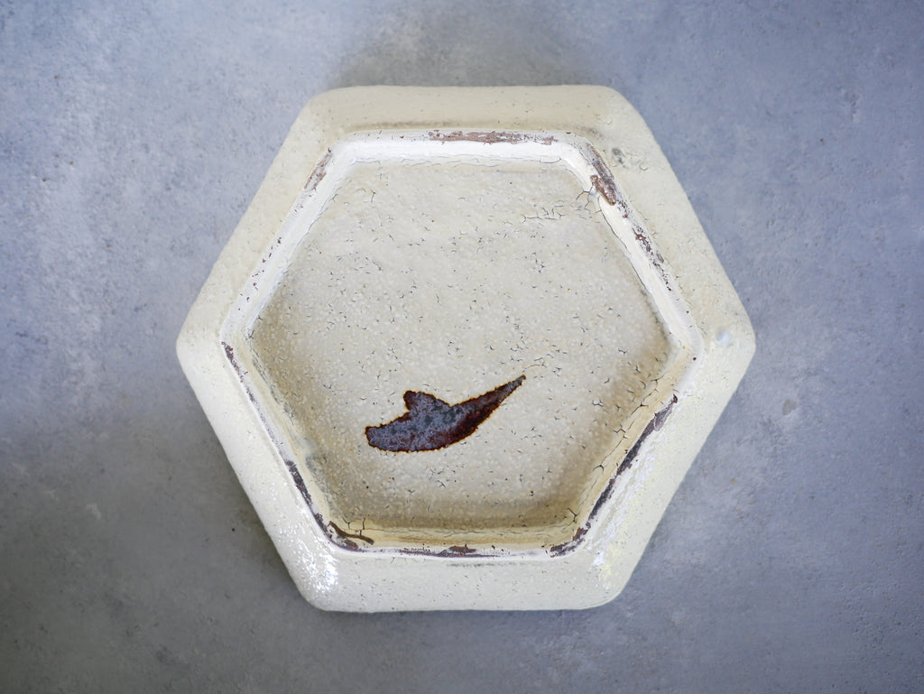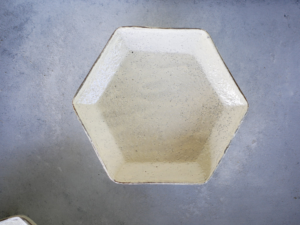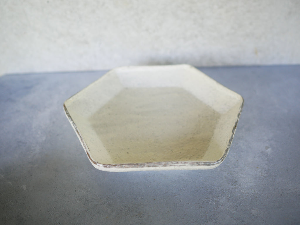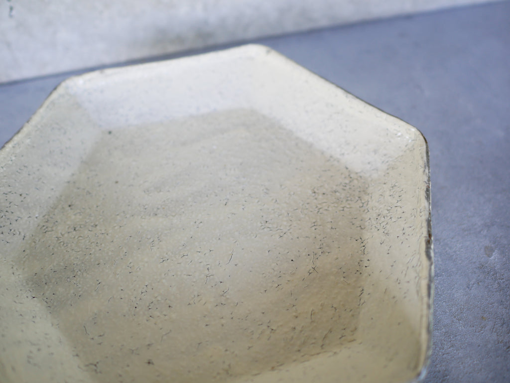 お漬物やお刺身、カルパッチョ、お酒の肴などに使ってもちょうど良い大きさです。六角形のデザインが食卓の雰囲気をすっと引き締めてくれます。和食にも洋食にも使い勝手の良い風合いです。