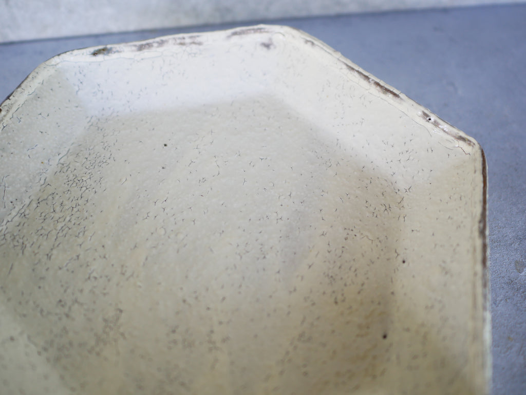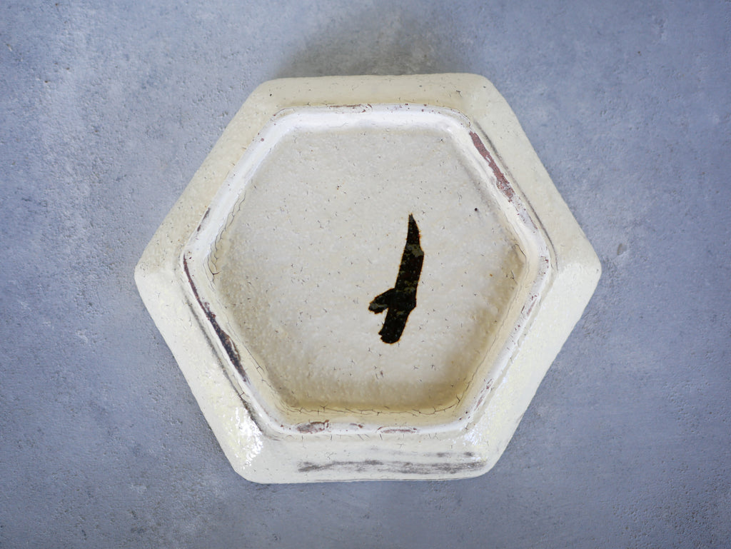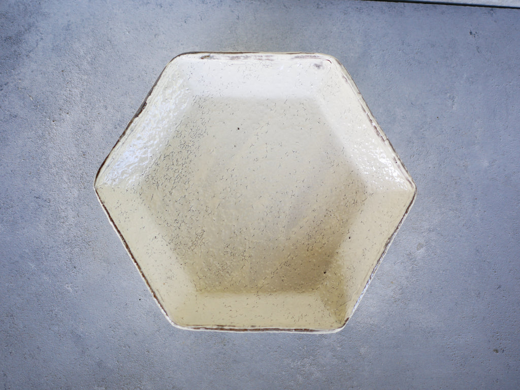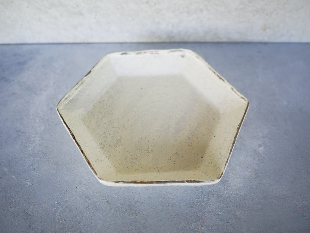 お漬物やお刺身、カルパッチョ、お酒の肴などに使ってもちょうど良い大きさです。六角形のデザインが食卓の雰囲気をすっと引き締めてくれます。和食にも洋食にも使い勝手の良い風合いです。
