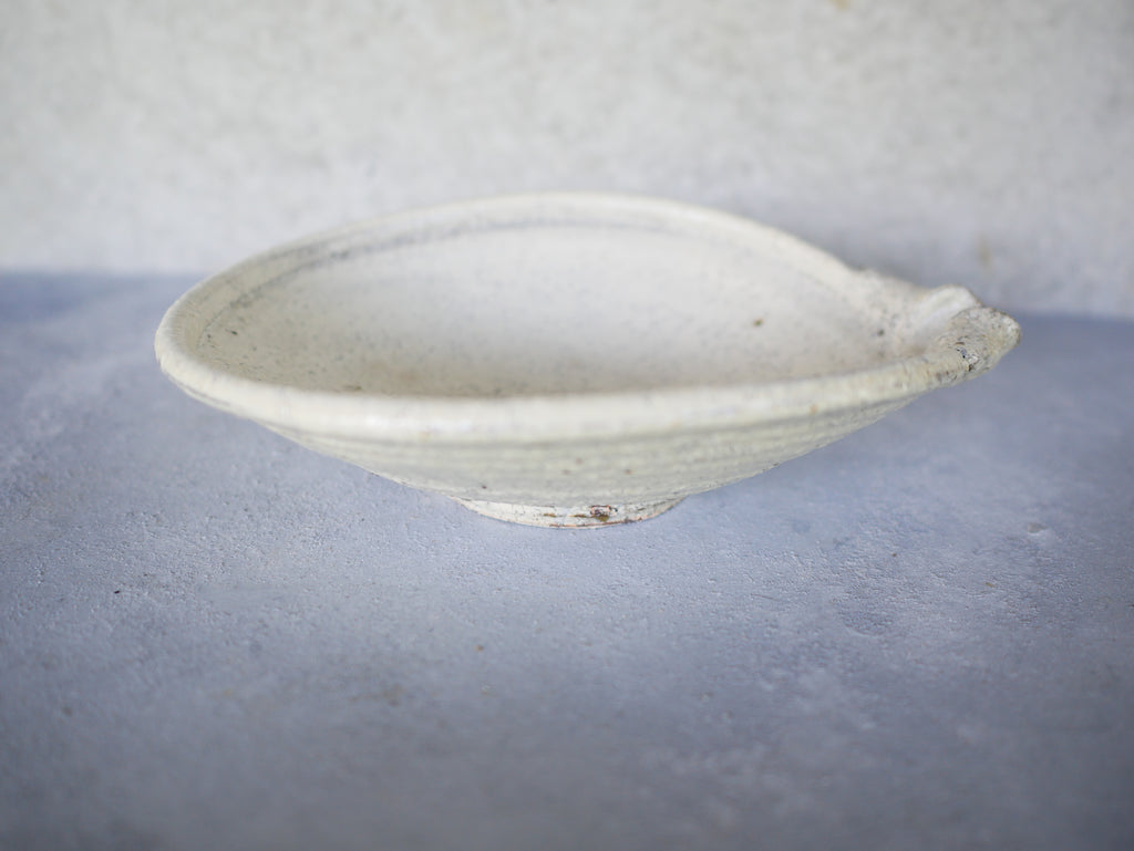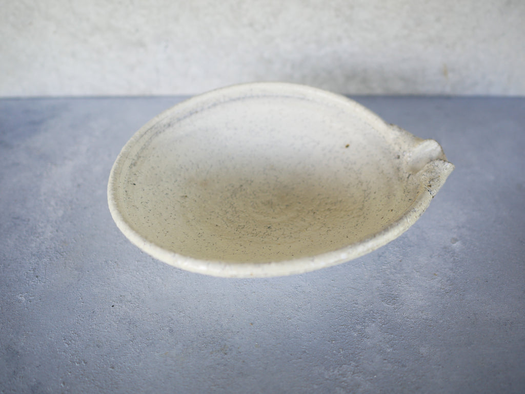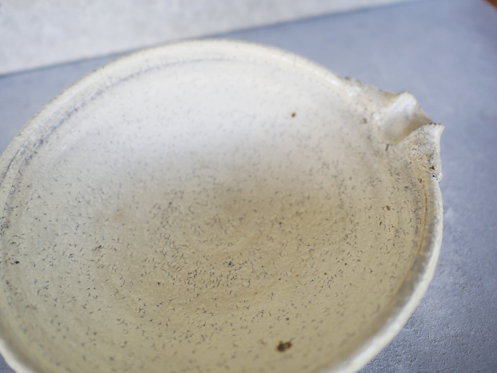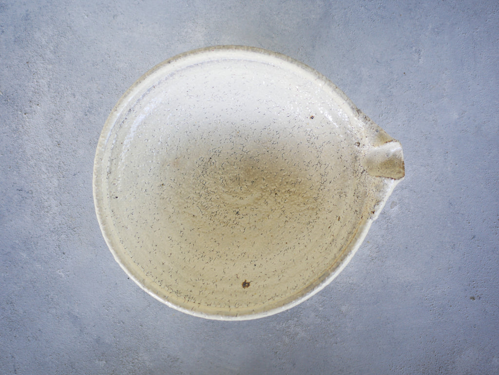 野菜の和物、肉じゃが、サブジなど、毎日の食卓に使いやすい工藤和彦さんの定番、平片口皿。少し深さがあるので、盛り付けがしやすいのも嬉しいですね。従来の粉引よりも温かみのある、生成りのような白で、料理を包み込むような優しさが感じられます。