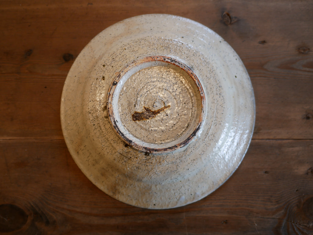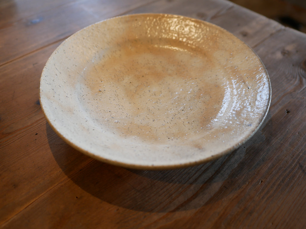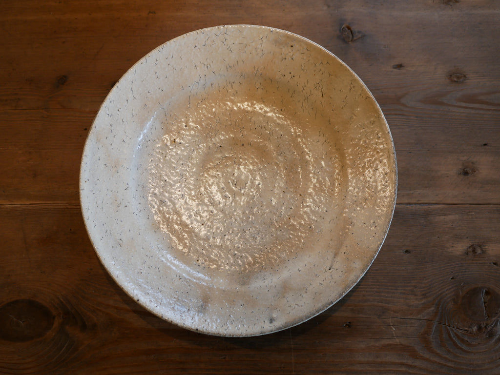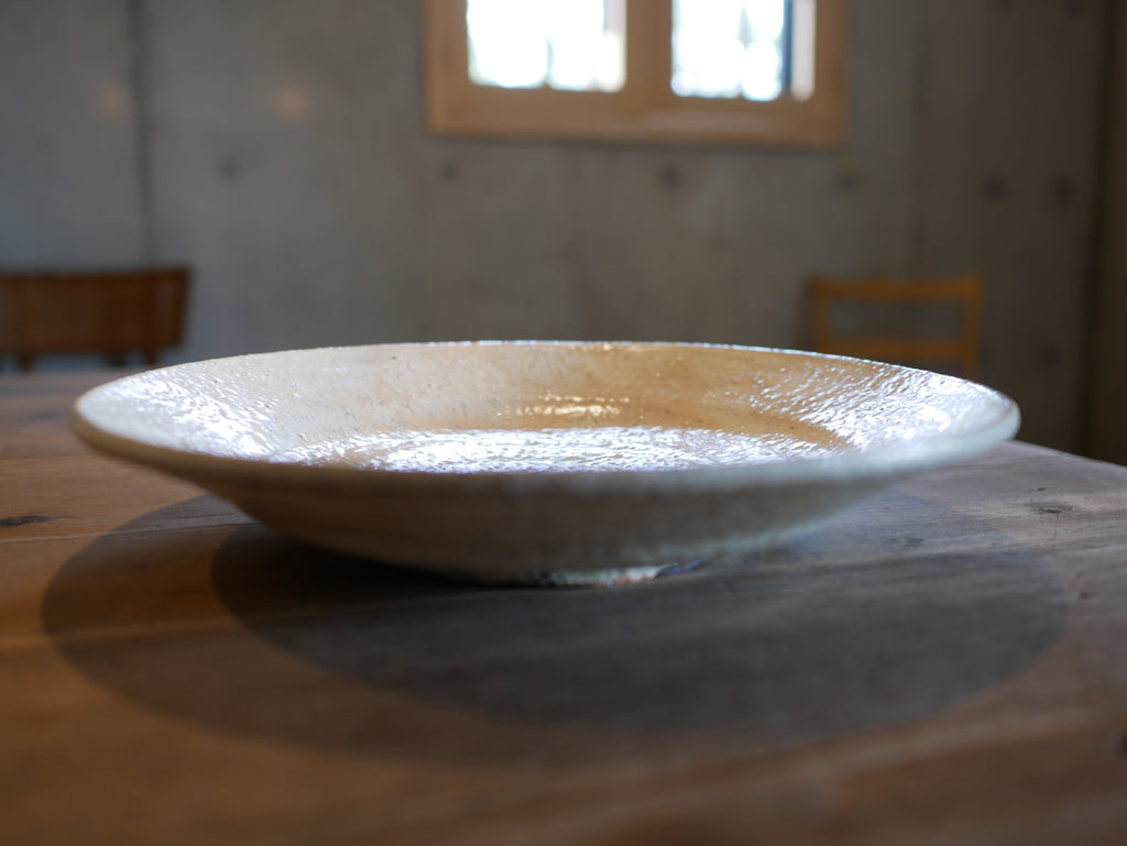 カレーやパスタ、魚の切り身、豚の生姜焼きなど、毎日の食卓に使いやすい工藤和彦さんのリム皿。従来の粉引よりも温かみのある、生成りのような白で、料理を包み込むような優しさが感じられます。