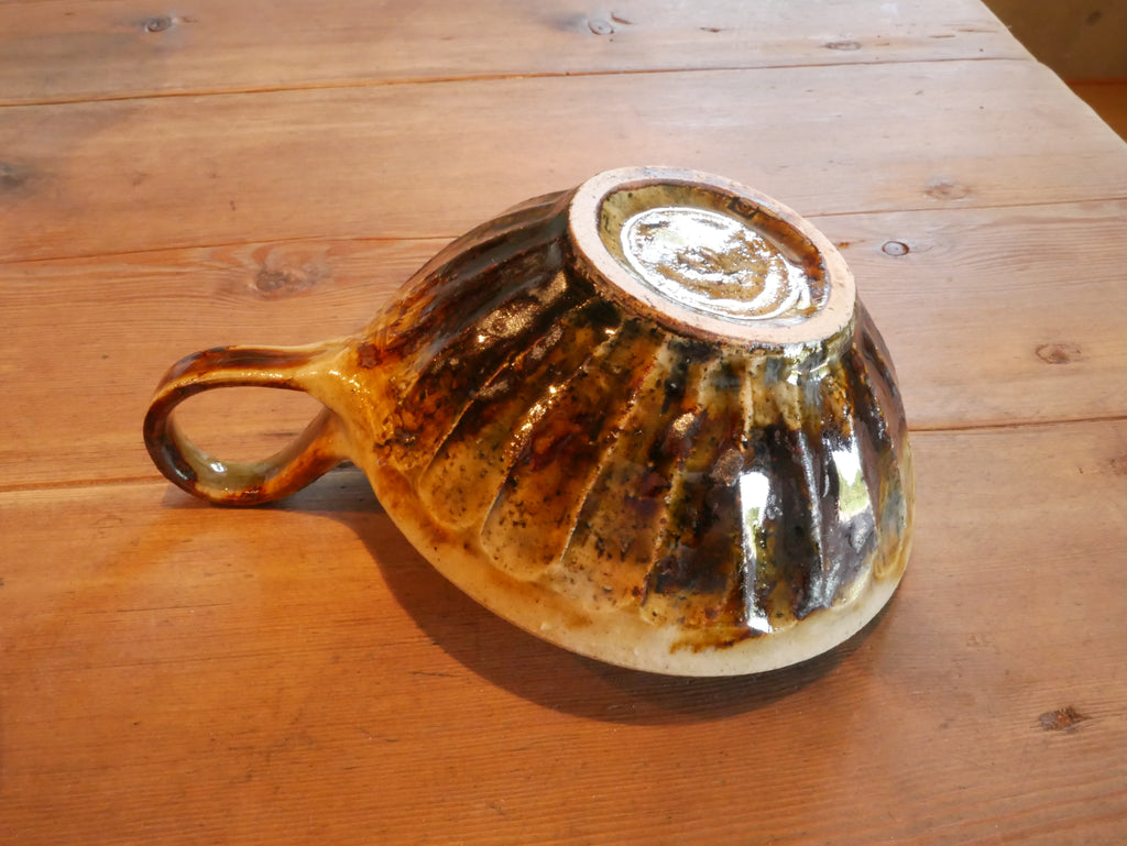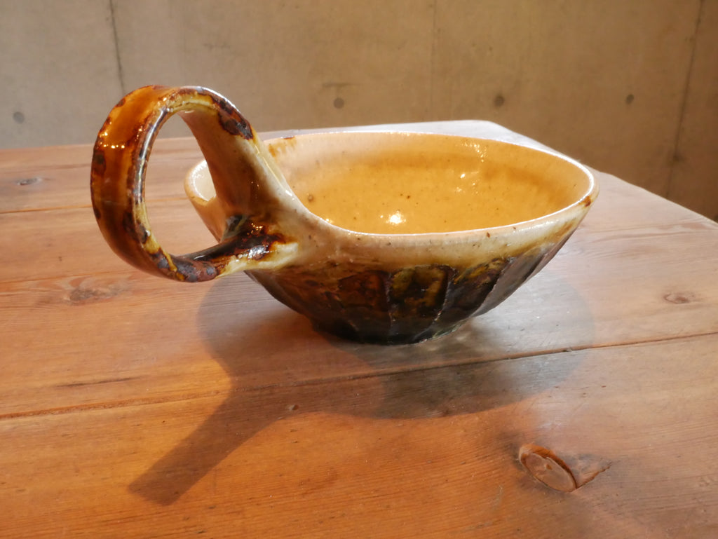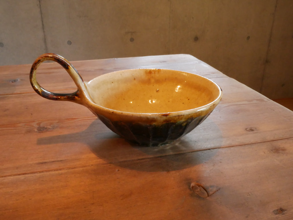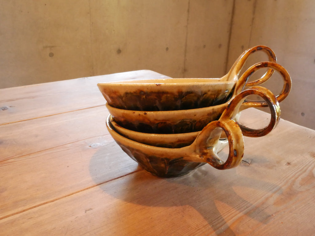 八木橋さんの定番であり人気商品である、スープ丸マグ。アンティークのような風情のある佇まいと、大きめの持ち手が可愛らしい一品。スープだけでなく、グラノーラやアッフォガート、自由な発想で楽しんでいただけます。マグを重ねて置くこともでき、使ってみると、その使いやすさに驚きます。