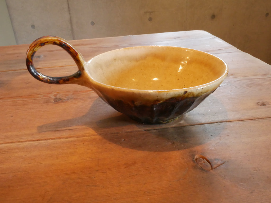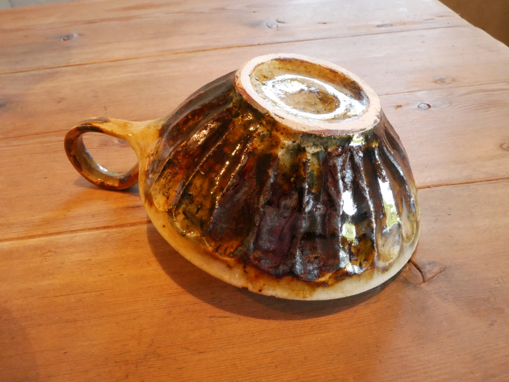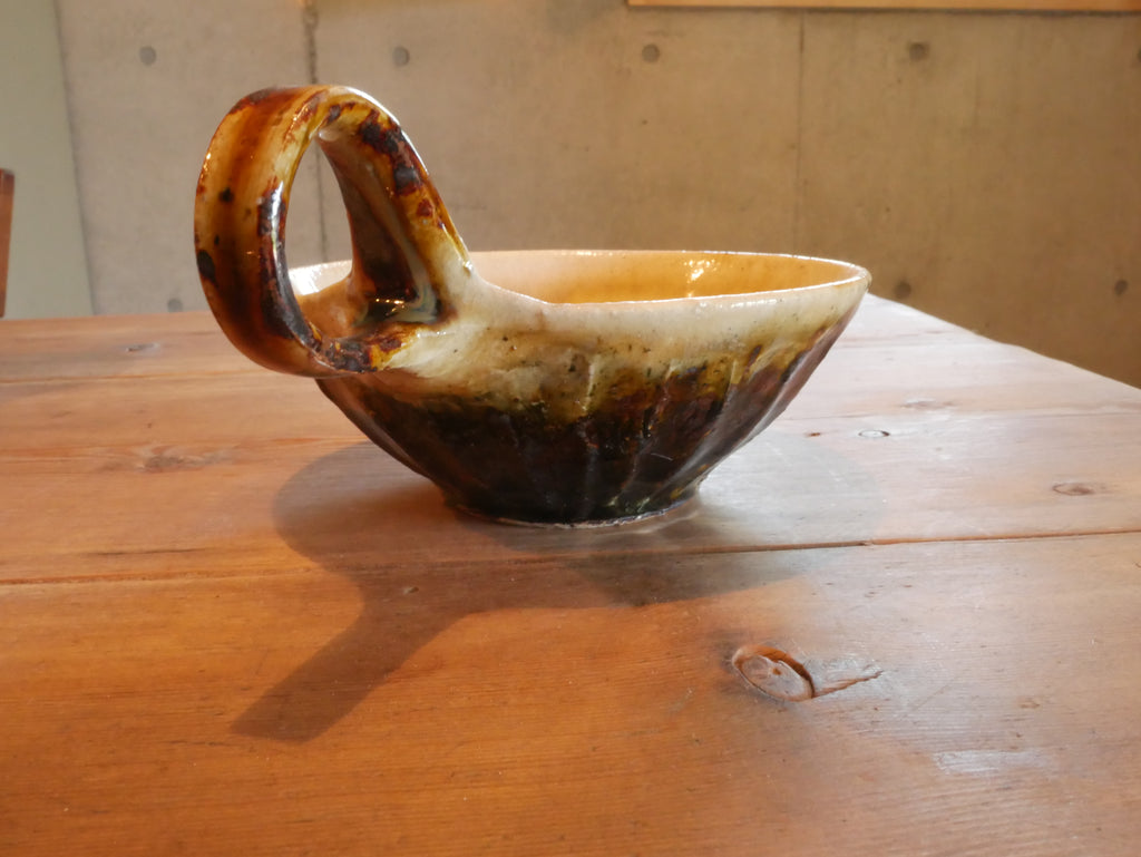 八木橋さんの定番であり人気商品である、スープ丸マグ。アンティークのような風情のある佇まいと、大きめの持ち手が可愛らしい一品。スープだけでなく、グラノーラやアッフォガート、自由な発想で楽しんでいただけます。マグを重ねて置くこともでき、使ってみると、その使いやすさに驚きます。