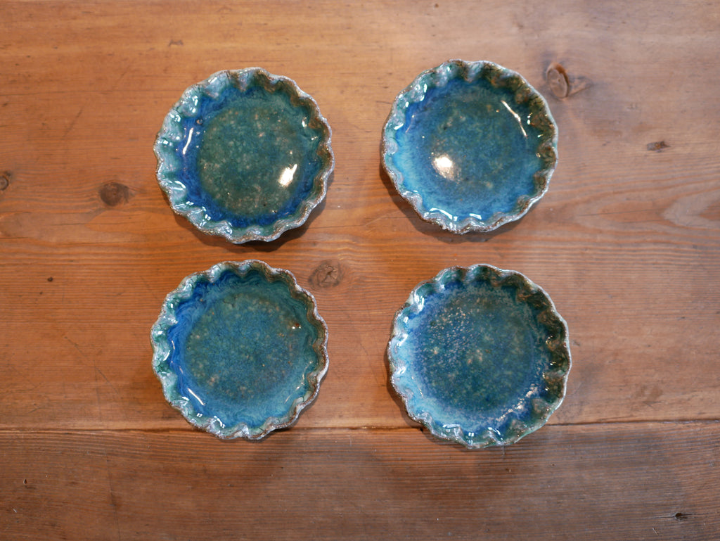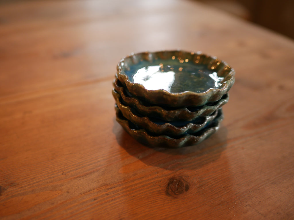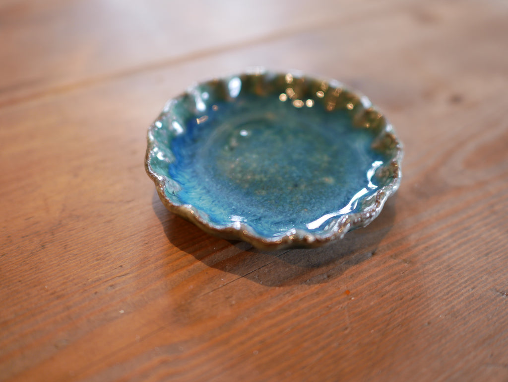 緑粉引輪花豆皿
