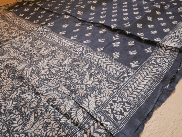 カンタ織 テーブルクロス(黒地に白刺繍)