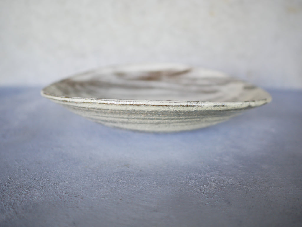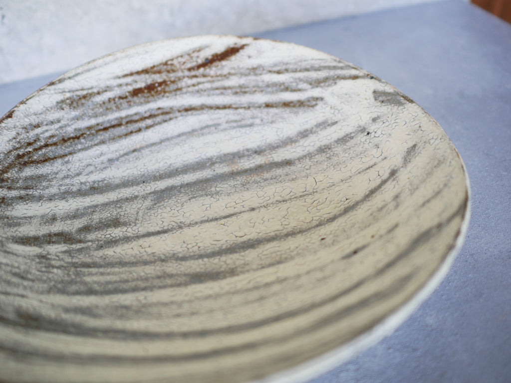 炒飯、カレー、ハンバーグ、毎日の食卓に使いやすい工藤和彦さんの8寸皿から、新しく刷毛目のたわみ皿が入荷いたしました。少し深みがあるので、ご飯でもスプーンですくって食べやすいのが嬉しいですね。モノトーンの涼しげな印象が暑い季節にもぴったりです。